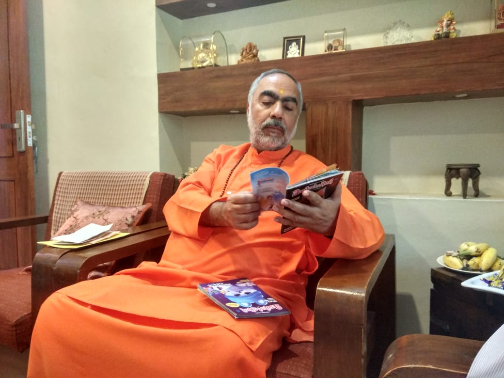ബാലഗോകുലം നൽകിയ മയിൽപ്പീലി മാസിക ചിന്മയാമിഷ്യൻ അഗോള അധ്യക്ഷൻ സ്വരൂപാനന്ദ സ്വാമികൾ വായിക്കുന്നു.