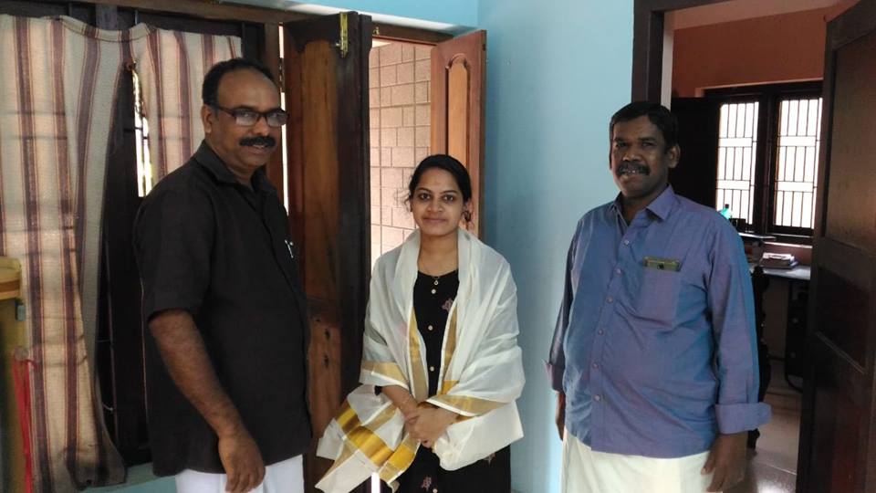 കാലിക്കറ്റ് യൂണിവേഴ്സിറ്റി എം.എസ്.സി മൈക്രോബയോളജി പരീക്ഷയിൽ രണ്ടാം റാങ്ക് നേടിയ അശ്വതി.എം നെ മയില്പ്പീലി മാസികക്ക് വേണ്ടി എഡിറ്റര് സി.കെ.ബാലകൃഷ്ണന് ആദരിച്ചു. സമീപം മയിൽപ്പീലി സംയോജകൻ പ്രഹ്ളാദന്.പി.ടി