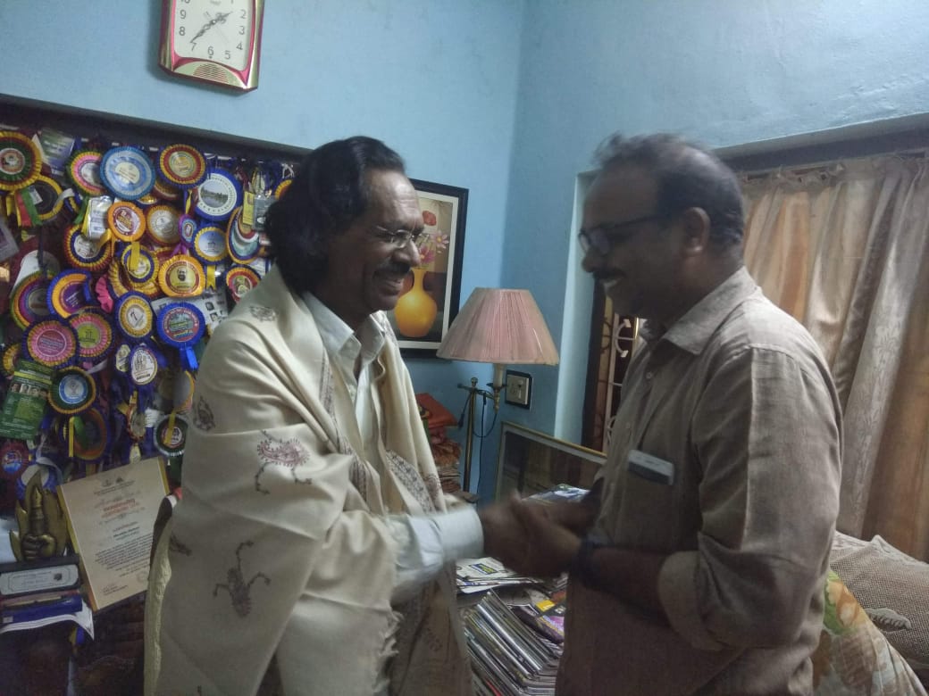 കേന്ദ്ര സാഹിത്യ അക്കാദമി അവാർഡ് നേടിയ എസ് രമേശൻനായർ സാറിന്റെ വസതിയിൽ എത്തി ബാലഗോകുലം സംസ്ഥാന അദ്ധ്യക്ഷൻ ശ്രീ കെ പി ബാബുരാജൻ മാഷ് ആദരിച്ചപ്പോൾ.